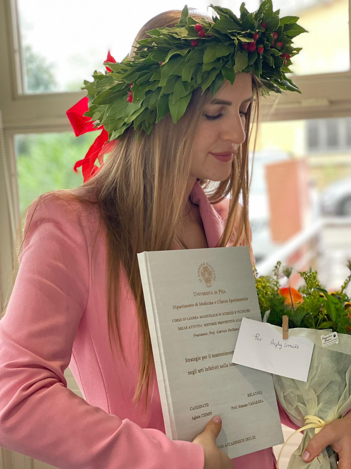 Mi chiamo Aglaia e sono dottoressa magistrale in Scienze e Tecniche delle attività motorie preventive e adattate, che ho conseguito nel 2022 presso l'Università di Pisa.